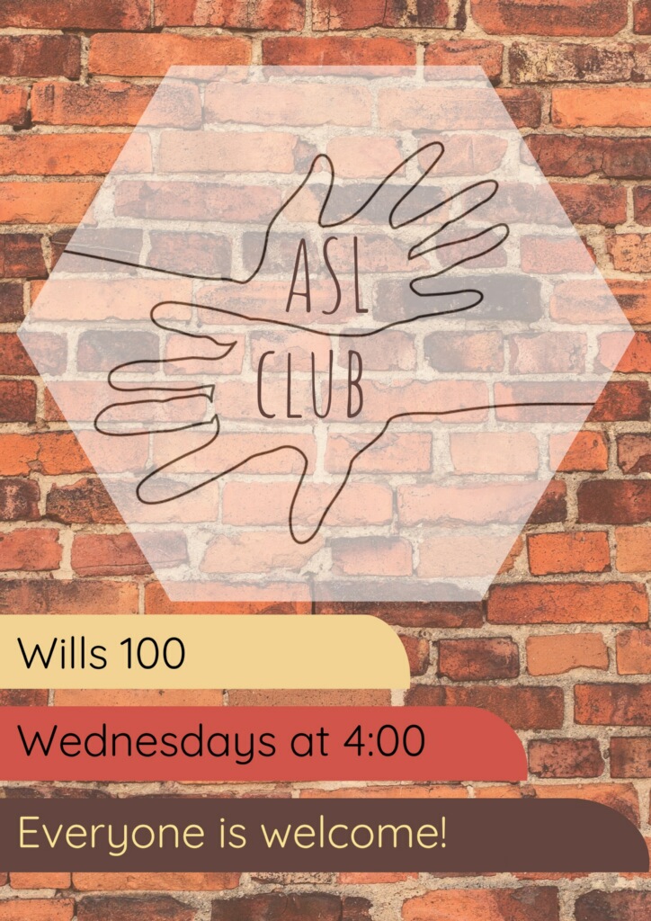 The American Sign Language (ASL) Club aims to help spread awareness about ASL and Deaf culture through activities and conversation.