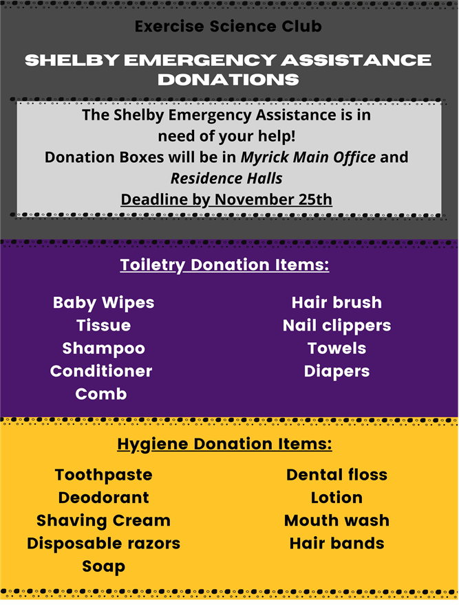 The University of Montevallo’s Exercise Science Club collected donations for Shelby Emergency Assistance this November.