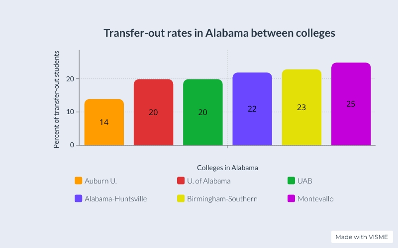 Chart of transfer-out rates among college students in the U.S. and the state of Alabama; Courtesy: University Stats
