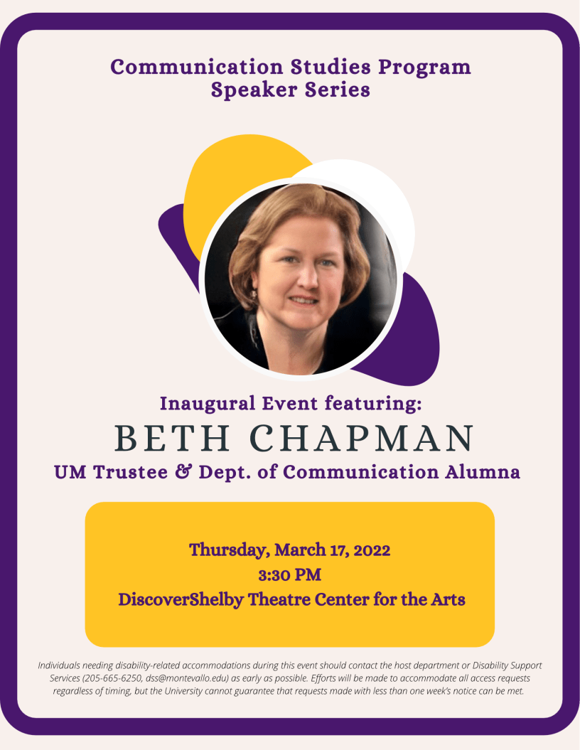 On Thursday, March 17th, Mass Communication alumni Beth Chapman was a guest speaker for the COMS Speaker Series. The series was put on hold due to COVID-19, but it is now back in full swing.