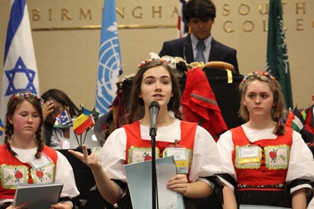 Students from all over the state participate in JUNA. Dulin emphasizes that JUNA is “an energetic and exciting event where kids from across Alabama meet new friends, discuss international issues and learn how to solve problems. It’s about connecting people from different schools and regions and connecting us to different nations and issues.”