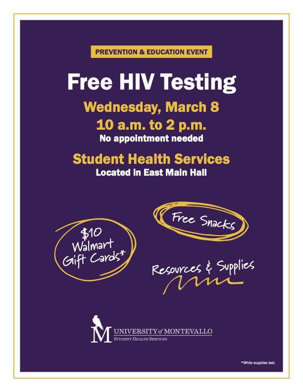 The University of Montevallo will be hosting an HIV testing clinic on campus to combat the spread of STDs.