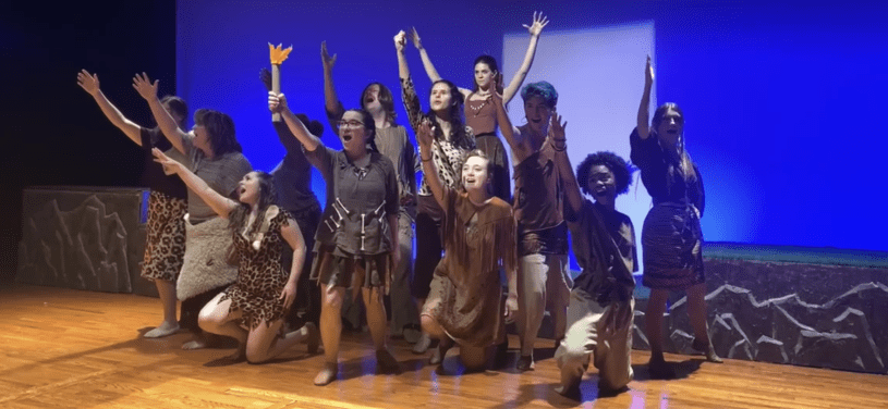 Many students outside of the musical theatre world might ask “What is Firebringer”. Yeah, I was one of those students until watching this show and known friends who were involved I never heard of the show. Firebringer is a comedy musical based on one tribe of cave-people trying to survive the many trails of prehistoric life under the wise leadership of character, Jemilla, also known as the “The Peacemaker”. Jemilla taught her people to express themselves, rather than bashing each others’ heads with rocks and eating each others’ babies. But while one member of the tribe doesn’t seem to fit in: Zazzalil. She’s always trying to invent things to make life easier…for herself. While out hatching her latest scheme, Zazzalil stumbles upon Theo most important discovery in history. One that will pit her tribe against wooly mammoths, saber-toothed tigers, and change the world forever. She’ll travel from omega to alpha, and become….The Firebringer!