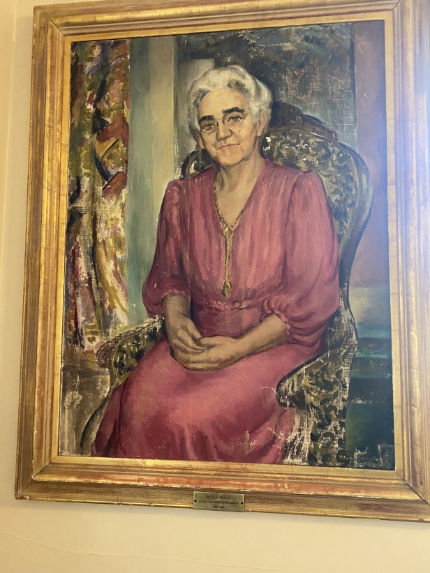 At Homecoming in 1945, her Sociology majors presented a portrait of her painted by Virginia Barnes of the Art Department. This portrait, which now hangs in Brooke Hall, is the centerpiece of many legends.