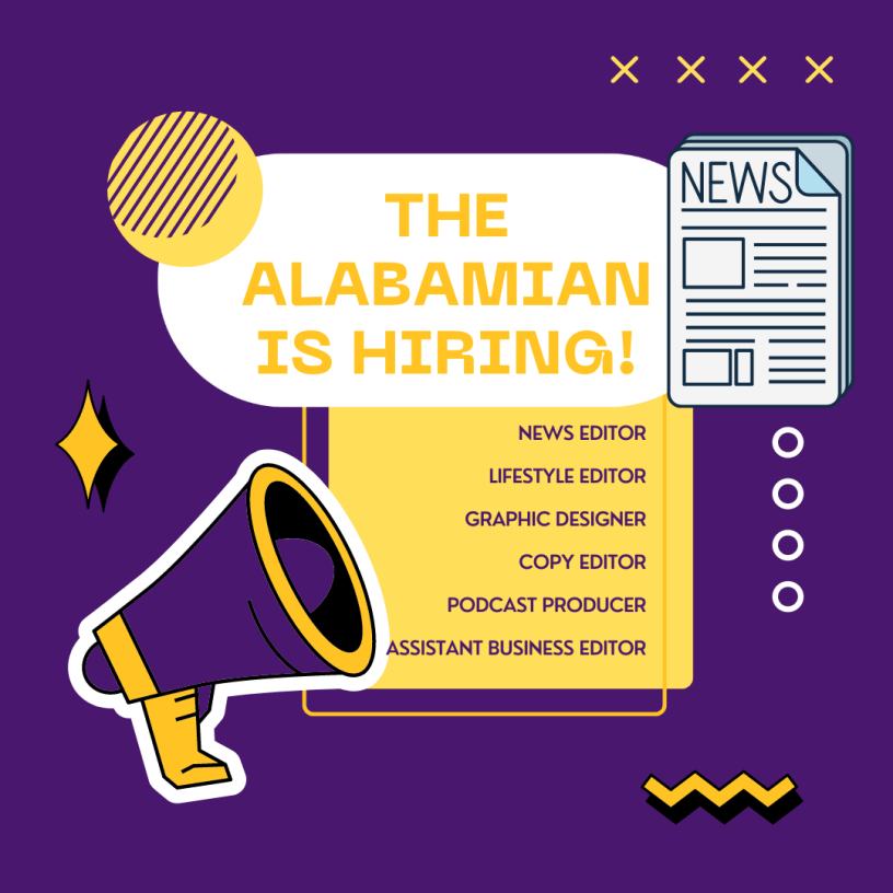 The Alabamian is looking for new staff for this upcoming fall. All these positions are paid, students that are interested in writing, opinion pieces, and photography are encouraged to take part of this opportunity.