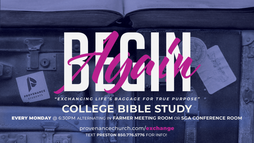 MONTEVALLO, Ala. — Provenance Students, a student organization at the University of Montevallo, is hosting a Bible study on campus for UM students. The Bible study is held on Monday nights from 6:30 to 8:00, with the organization serving free dinner to those who attend.