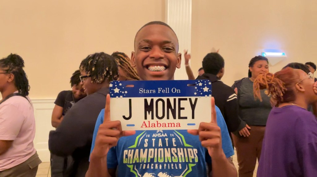 For this semester’s Midnight Breakfast, students had the option of group photos in a photobooth, or having their very own custom license plate made.