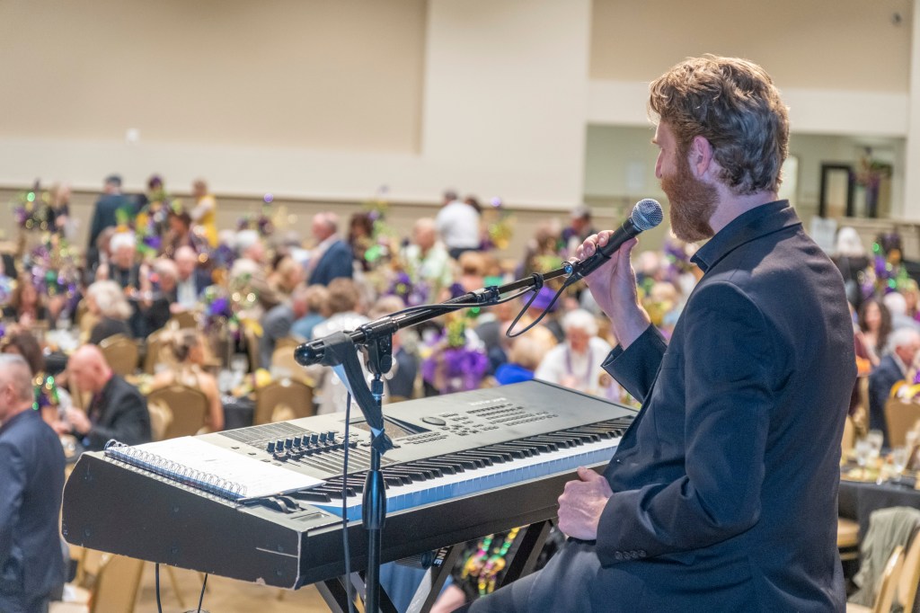 The Shelby County Arts Council staff chose Bruce and Joy Andrews as king and queen of the gala. Bruce Andrews recently retired as director at the arts council. His wife, Joy Andrews, has been a consistent supporter of the arts council. Joy expressed that winning the title of queen was “unreal.” Bruce also seemed to enjoy himself at the gala, even taking to the stage to play the harmonica with the band, something Bruce is known for around the arts council.