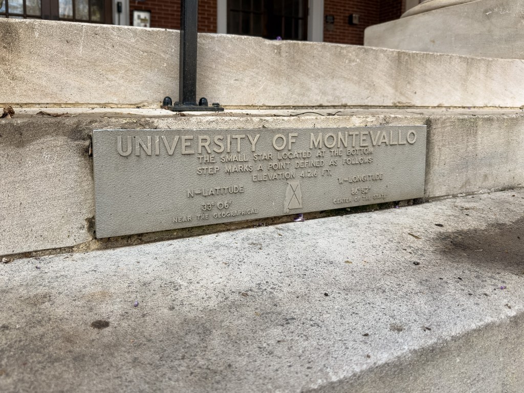 The city of Montevallo was originally deemed the geographic center of Alabama from the state’s founding in 1819. The town took some pride in this, with another plaque noting the same claim to fame located on the steps of Main Hall on the University of Montevallo.
